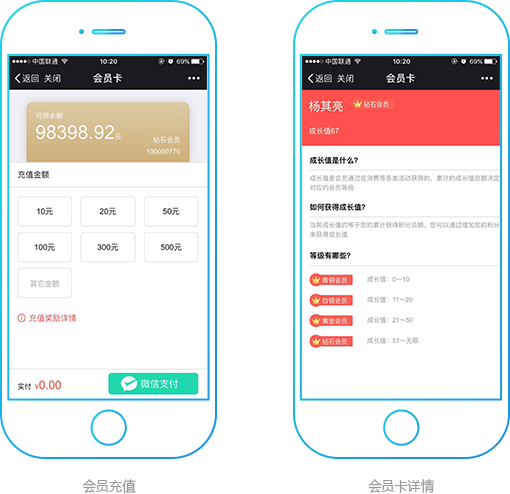 多会员权益,等级、积分、余额帮助高效管理会员营销